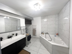 Un vaste séjour/cuisine lumineux de plus de 78 m2, bénéficiant de grandes ouvertures sur l'extérieur, offrant une ambiance chaleureuse. Une cuisine américaine, idéale pour recevoir vos invités et profiter d'un espace convivial. Trois chambres, dont une en rez de chaussée et une avec salle d'eau privative. Une salle de bain avec baignoire d'angle, ainsi qu'un WC séparé. Une terrasse à l'abri des regards orientée sud, où vous pourrez profiter d'agréables moments en extérieur tout au long de l'année. Une cave pour un espace de rangement supplémentaire.