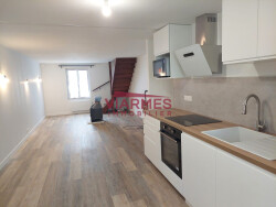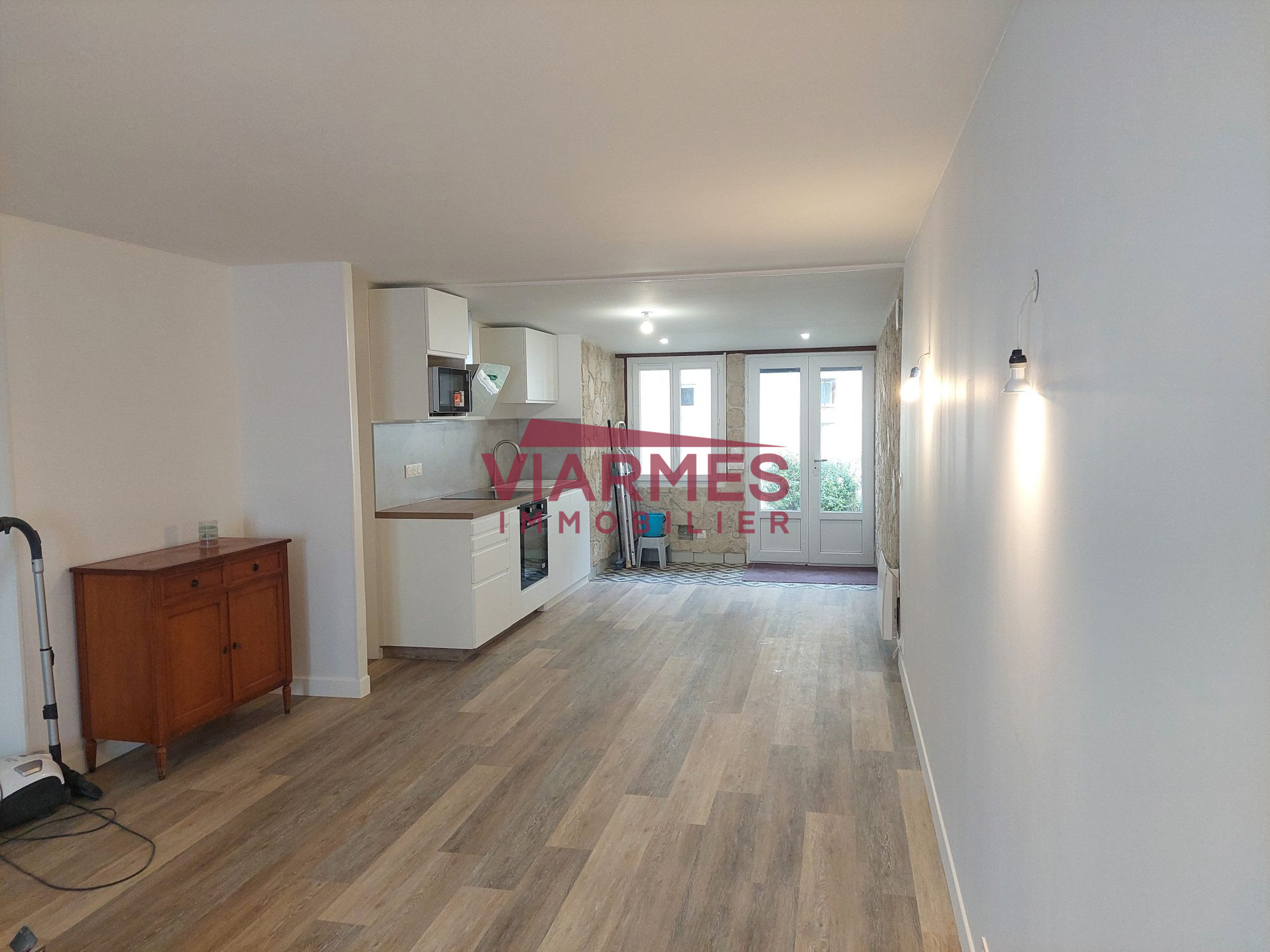 Centre-ville de Viarmes, maison ancienne indépendante rénovée offrant, au rez-de-chaussée, séjour, cuisine aménagée, chambre avec dressing et salle d'eau privative, à l'étage, chambre, salle de bain, WC. Cave, Garage (citadine), terrain clos de 452 m².