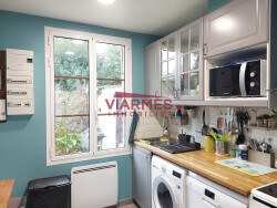 Centre-ville de Viarmes, maison ancienne indépendante rénovée offrant, au rez-de-chaussée, séjour, cuisine aménagée, chambre avec dressing et salle d'eau privative, à l'étage, chambre, salle de bain, WC. Cave, Garage (citadine), terrain clos de 452 m².
