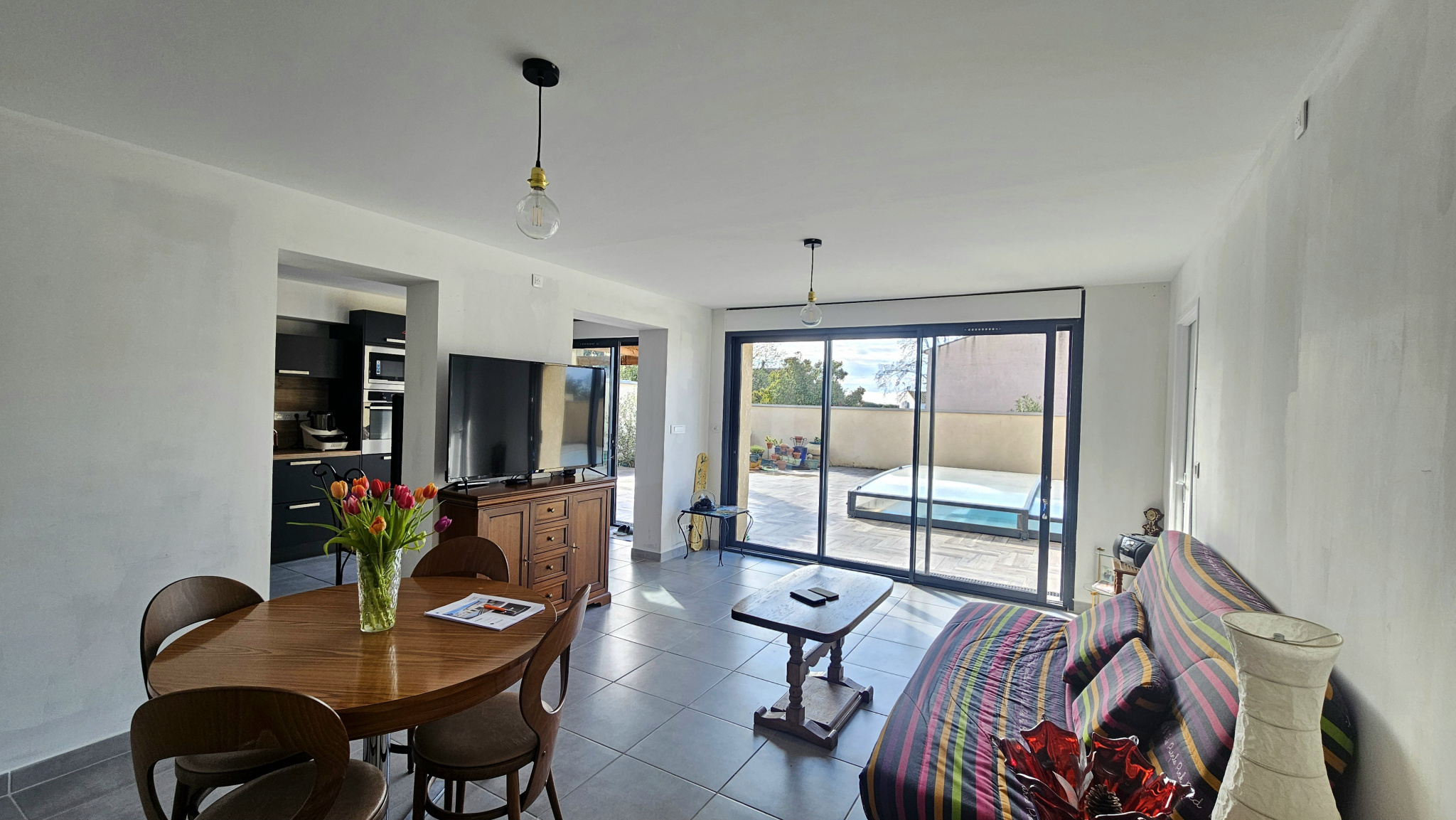 Dans un environnement privilégié, découvrez cette élégante villa de plain-pied de 107 m2 habitables, aux prestations soignées et contemporaines. Elle offre une superbe pièce de vie de 57 m2, baignée de lumière, comprenant un séjour / salon et une cuisine entièrement équipée, pensée pour le confort et la convivialité. L'espace nuit se compose de trois chambres, d'une salle d'eau moderne avec douche à l'italienne, ainsi que de trois WC, apportant un réel confort au quotidien. Les annexes complètent parfaitement le bien avec un garage de 30 m2 et une cuisine d'été de 30 m2, idéale pour recevoir en toute saison. Implantée sur un terrain paysagé de 533 m2, la propriété bénéficie d'une piscine chauffée au sel, forage, véritable invitation à la détente. De nombreux travaux récents ont été réalisés avec des matériaux de qualité : électricité, menuiseries, cuisine, et plus encore. ? Un bien clé en main, aux prestations de standing, alliant confort, modernité et art de vivre.