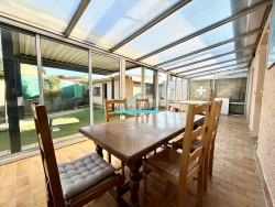 Capitelle Immobilier vous propose cette agréable maison de plain-pied d'environ 87 m2 sur un terrain de 462 m2, mitoyenne uniquement par le garage, offrant de belles préstations et un fort potentiel d'aménagement. Dés l'entrée, la maison se compose d'un hall d'entrée , une cuisine , une grande pièce de vie lumineuse avec cheminée. Le coin nuit bien séparé comprend deux chambres, une salle d'eau récemment rénovée, ainsi que des toilettes indépendant. La maison dispose également d'une grande véranda idéale pour profiter du jardin toute l 'année. vous bénéficierez d'un grand garage de 25 m2 , mézzanine de rangement et d'une cave de 5 m2 . Coté extérieur , une dépendance de 20 m2 qui pourra et transformé en studio ou cuisine d'été. Le plus de cette villa , des panneaux photovoltaiques en auto consommation et qui génère aussi un revenu annuel . Les prestations : climatisation du salon, menuiseries PVC double vitrage, volets roulants électriques, stores bannes, pergola bioclimatique, portail électrique... La Toiture à été récemment révisée et la façade repeinte, offrant un extérieur soigné. L ensemble bénéficie d'une excellente exposition, assurant une belle luminosité tout au long de la journée. Prix: 377 000 euros Les honoraires d'agence sont à la charge du vendeur. Pour tout renseignement contactez Nelly Guillermet Agence Capitelle Immobilier Mireval