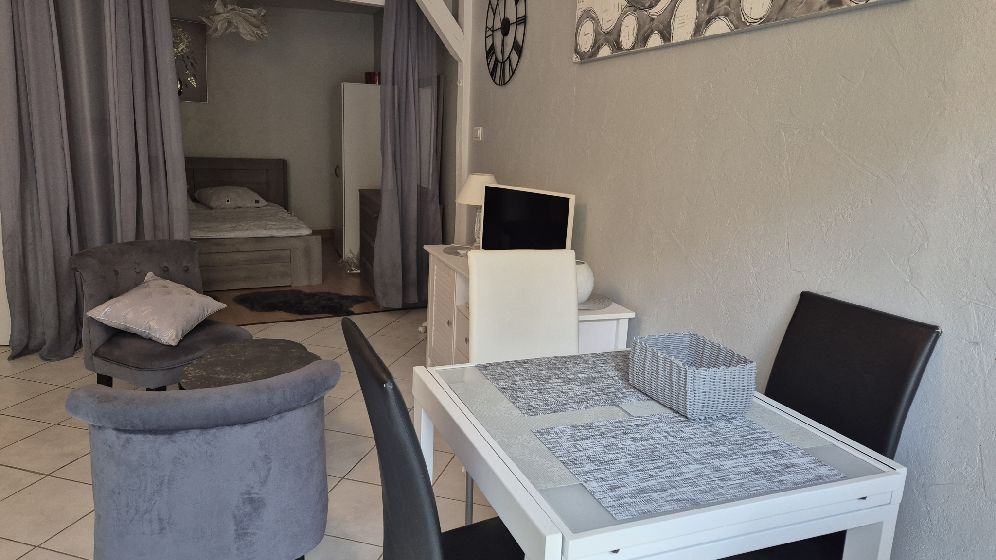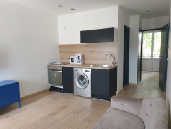 VICHY, idéal étudiant proche école kiné, pôle Lardy, type F2 meublé avec cuisine équipée et aménagée (plaque, four, hotte, machine à laver) donnant sur grande terrasse, chambre avec lit double, bureau, salle de douche - Double vitrage, chauffage électrique compris dans le loyer. Libre mi-décembre 2025. Loyer : 545EUR (chauffage et électricité inclus) + charges : 20EUR (eau) BELLERIVE IMMO