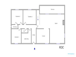 Rez-de-chaussée : - Un hall - Un salon / salle à manger - Une cuisine (pouvant être fermée) - Des toilettes - 3 chambres (Dont 1 avec dressing) - Une salle d'eau (Douche à l'Italienne) - Balcon