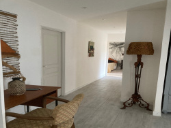 Vierzon Nord, quartier du stade, beau pavillon de plain pied de 113 m2 sur un terrain de 2130 m2: entrée, séjour-salon avec cuisine ouverte aménagée et semi-équipée, (plaque, four, hotte, lave linge), trois chambres avec armoires dont une avec salle d'eau/wc privative, salle d'eau, wc - grande terrasse. Studio attenant avec pièce de vie, kitchenette et salle d'eau avec wc. Jardin clos, garage