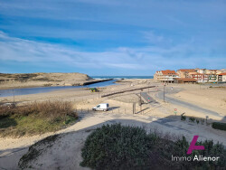 Situé dans une résidence au pied du lac et de l'océan, cet appartement vous séduira par sa terrasse offrant une vue imprenable sur l'océan. Véritable invitation à la contemplation, vous pourrez y admirer chaque soir des couchers de soleil spectaculaires qui prolongeront l'impression d'être en vacances jour après jour. L'entrée dessert une belle pièce de vie avec cuisine ouverte, une chambre dotée d'un placard, une salle d'eau équipée d'une spacieuse douche, ainsi qu'un WC indépendant. À l'étage, une mezzanine offre un espace idéal pour un couchage supplémentaire ou un coin dédié aux enfants. La terrasse fermée en véranda vous permettra de partager des repas en famille ou entre amis tout en profitant d'un panorama exceptionnel sur l'océan et le ballet des vagues.
