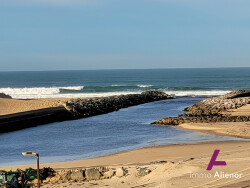 Situé dans une résidence au pied du lac et de l'océan, cet appartement vous séduira par sa terrasse offrant une vue imprenable sur l'océan. Véritable invitation à la contemplation, vous pourrez y admirer chaque soir des couchers de soleil spectaculaires qui prolongeront l'impression d'être en vacances jour après jour. L'entrée dessert une belle pièce de vie avec cuisine ouverte, une chambre dotée d'un placard, une salle d'eau équipée d'une spacieuse douche, ainsi qu'un WC indépendant. À l'étage, une mezzanine offre un espace idéal pour un couchage supplémentaire ou un coin dédié aux enfants. La terrasse fermée en véranda vous permettra de partager des repas en famille ou entre amis tout en profitant d'un panorama exceptionnel sur l'océan et le ballet des vagues.