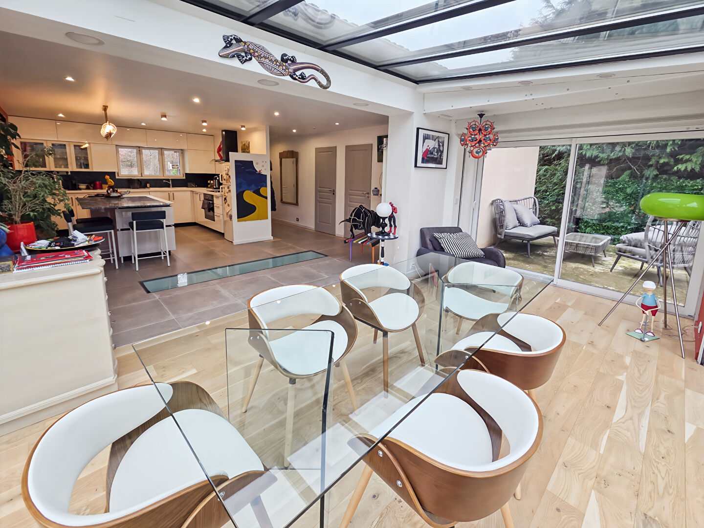 Un double garage et un jardin de 350 m² complète ce bien