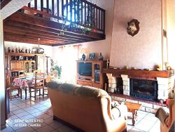 FEURS Prox. A72. Villa d'architecte, contructruction entièrement tradition., parfait.entretenue. Année 1990. Belles prestations, 128 m² hab. compr. au rdc : entrée sur séjour/salon de 37 m² cheminée FF, cuisine ouverte 11m² équipée, portes-fenêtres ouvrant /terrasse Sud et S/O- wc, cellier-buanderie 11 m², atelier 16,70 aménageables, garage 32m², 2 vl. A l'étage : 3chambres (11, 11 et 12 m²), placards, mezzanine 15 m², s. d'eau, wc, + studio avec balcon, accès indépendant, s. d'eau avec douche et wc. Chauff au sol + convecteurs. Abri voiture, et abris bois. Terrain 1 310 m² clos, portail motorisé. DPE : D. GES : B (8 kg co²/m²/an) - 262.000 €. Honoraires charge vendeur. ROCHETTE Immobilier O6 79 65 37 44. Prix moyens des énergies indexés sur les années 2021/22/23 abonnement compris entre