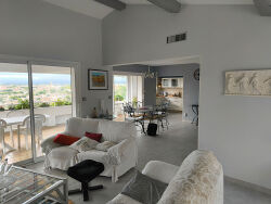 No 4527: Villa plain pied sur grand terrain située dans un village calme proche de toutes commodités. L'espace de vie se compose d'un salon, d'un espace repas et d'une cuisine équipée pour une surface totale de 55m2 et donnant sur une belle terrasse pour profiter de son jardin arborée. L'espace nuit est constitué de trois chambres (10.16m2/10.3m2/13.06m2) , d'une salle d'eau ainsi que d'un toilette indépendant. Le jardin est entièrement cloturé avec sa piscine traditionnelle équipée d'un volet roulant de sécurité, le local technique (filtration chlore et Ph auto), son terrain de pétanque, un abri sur l'arrière pour stocker , son garage attenant de 20m2 ainsi qu'un abri véhicule de 38m2. Vous aurez la possibilité de revendre une parcelle constructible située à l'entrée de la propriété ou de réaliser un projet immobilier. Secteur calme et proche de toutes commodités ( commerces et hopital privé du grand Narbonne) à 15 minutes de Narbonne centre et 30 minutes de la mer.. Le prix est exprimé frais d'agence inclus (FAI) Pour toutes informations complémentaires et pour organiser une visite, contacter THIERRY au O6.61.02.27.57
