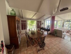 Elle comprend 4 chambres dont 1 avec salle d'eau et WC attenants, 1 cuisine, 1 grand séjour d'environ 50m², 1 bureau d'environ 40m², 1 salle de bains avec WC, 1 WC, 1 varangue d'environ 30m² donnant sur un jardin arboré.