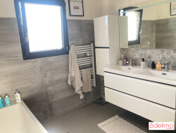 Contacter Maryse et William, vos Conseillers en Immobiliers ADELIMO, au 06.81.25.37.26 - SAINT-GERVASY (30), Villa (7 pièces), 5ch., très lumineuse, de rénovation récente avec beaucoup de goût, de grands volumes, un style très affirmé, offrant, un espace patio couvert (32m²), ensemble (47m²) entrée, cuisine haut de gamme aménagée et équipée (îlot central) ouverte sur salle à manger et salon (20m²), avec accès sur une grande terrasse carrelée, dallée et piscine exposée plein Sud, puis, un couloir qui dessert 2 chambres, salle de bains, WC, dressing, puis un dégagement qui conduit à 3 suites parentales (ch., salle d'eau, WC, dressing), dont une avec accès patio, et une avec un espace détente (terrasse privée), et buanderie / lingerie. Attenant: piscine (8X4) coque, traitement chlore, avec son local technique et sa cuisine d'été, cabanon de jardin, et garage (20m²). De très belles prestations de qualité, climatisation réversible, poêle à granulés, électroménager haut de gamme, de nombreux placards, menuiseries PVC, double vitrage, fenêtres oscillo-battantes, volets roulants électriques à commande individuelle et centralisée, FIBRE OPTIQUE, terrain gazonné, borne de recharge, stores bannes, portillon et portail garage à ouverture électrique. Le tout sur un terrain clos, arboré, sans vis-à-vis, quartier calme, proche de toutes commodités, commerces, groupes scolaires, liaisons bus, gares SNCF, axes routiers et autoroutiers. A VOIR RAPIDEMENT.