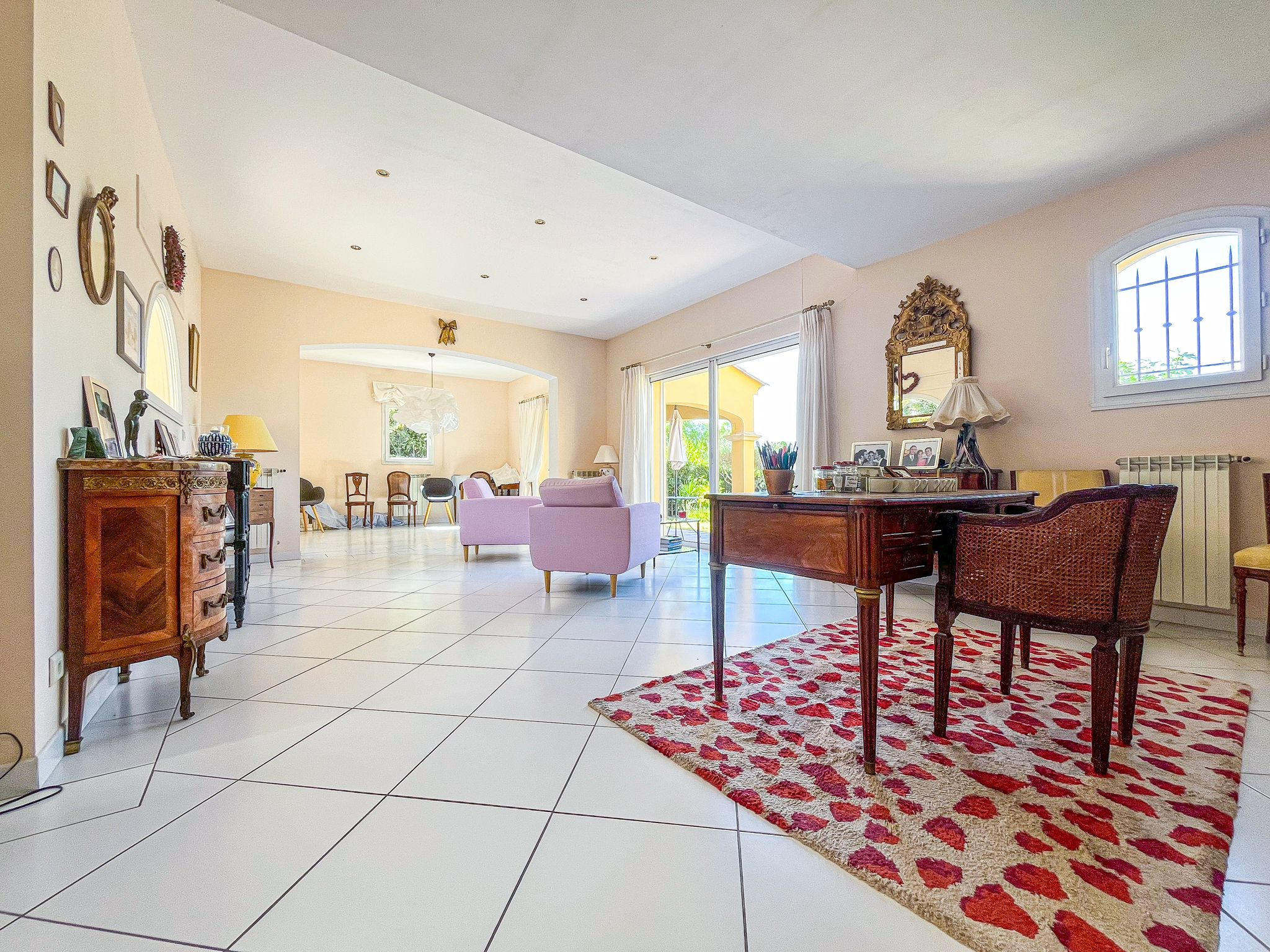Cette villa de 129 m² bénéficie d'une exposition plein sud, offrant une belle luminosité tout au long de la journée. Proche des écoles et commodités, elle constitue un cadre de vie idéal pour une famille. Édifiée sur deux niveaux, la maison propose au rez-de-chaussée un appartement T2 indépendant comprenant séjour, cuisine, chambre, salle d'eau ainsi qu'un garage. À l'étage, un espace de vie composé d'un salon, d'une salle à manger, d'une cuisine équipée, de deux chambres et d'une salle d'eau. À l'extérieur, plusieurs terrasses et un balcon permettent de profiter pleinement du climat méditerranéen. Vue dégagée, potentiel de division et qualité de construction complètent les atouts de cette propriété.