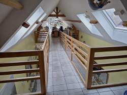A quelques mètres de la plage de Porcé, jolie villa de 2003 offrant un salon/séjour, une cuisine aménagée et équipée, dégagement, WC, une salle de bains, un dressing et une chambre. A l'étage: mezzanine, une passerelle,dégagement, salle d'eau avec WC, deux chambres. Un abri de jardin et une terrasse.