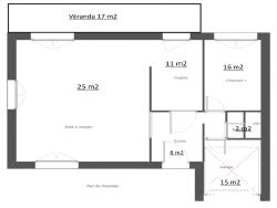 - Cuisine semi-ouverte aménagée et équipée de 11 m2 donnant sur véranda de 17 m²