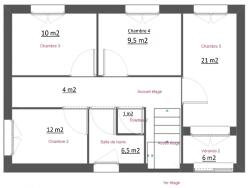 - 4 chambres à l'étage (dont une de 21 m2) + 1 chambre parentale en rez-de-chaussée (15,5 m2) avec salle d'eau