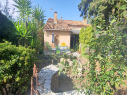 SAINT-RAPHAEL: Rare à la vente : Dans le quartier prisé de Santa Lucia Villa indépendante de caractère et de charme, traversante, lumineuse, proche centre ville et plages, de plain pied, comprenant : un hall d'entrée, un séjour, une cuisine indépendante donnant sur jardin et terrasses dont une ombragée, 3 chambres, une salle de bains avec baignoire et douche, placards, rangements, un garage de 24m2, un sous sol de 23m2, sur un terrain de 465 m2 A visiter rapidement !