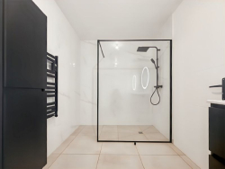 Il y a 3 chambres, une salle d'eau moderne, et deux WC dont un séparé.