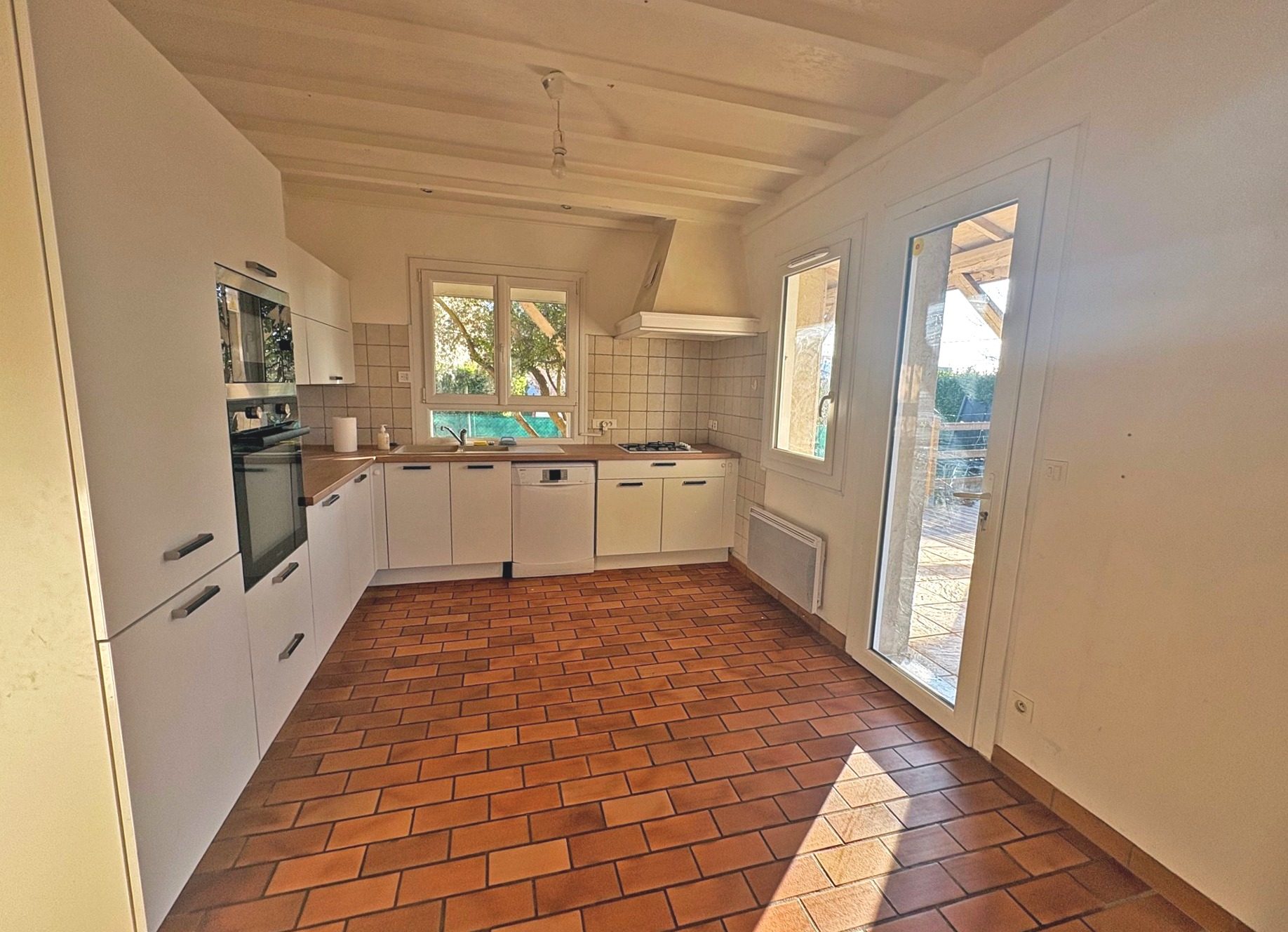 Villa de 189 m² habitables sur 2 051 m² de parc plat et clos dont 700 m² avec grand abri de jardin possiblement détachable avec une entrée séparée déjà créée. L'habitation se compose au rez-de-chaussée d'un hall d'entrée, d'une cuisine meublée et équipée, d'un salon séjour de 30 m² en L tous deux donnant accès à une agréable terrasse plein sud, d'un bureau ouvert, d'un dégagement avec placards dressing, de deux chambres, d'une salle d'eau avec douche à l'italienne, de toilettes.