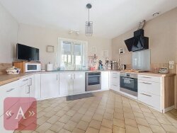 Située à 5 minutes du centre ville de saint-sulpice-la-pointe, cette charmante maison de plain-pied d'environ 100 m2 saura vous séduire par son confort et son potentiel. Elle se compose d'un espace vie lumineux avec cheminée et climatisation réversible ouvert sur la cuisine moderne installée en 2021 ainsi qu'une véranda. La partie nuit comprend 3 chambres, un bureau, une salle d'eau rénovée en 2023 et un toilette indépendant. A l'extérieur, vous profiterez d'une agréable terrasse et d'un terrain plat constructible de 2350 m2, idéal pour imaginer d'autres projets. Un vaste sous-sol de 110 m2 ainsi qu'une dépendance d'environ 60 m2 viennent compléter cet ensemble offrant de nombreuses possibilités ( atelier,stockage,...) LES ATOUTS: Pompe à chaleur/climatisation/cheminée Grand sous-sol Dépendance Terrain constructible Pour visiter ce bien, contactez-nous au: 05 63 41 35 88. Mandat N°4899 Prix TTC et Honoraires à charge vendeur TTC
