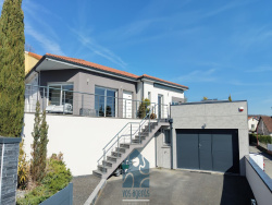 CHATEAUGAY // Vos Agents vous proposent... une superbe villa contemporaine dans un environnement résidentiel privilégié développant près de 290m2 au total avec vue panoramique spectaculaire à 180o, piscines intérieure et extérieure, espace bien-être. Cette villa aux lignes élégantes offre des prestations rares pour un confort de vie optimum à seulement 5 min de Clermont-Ferrand. Cette propriété possède une architecture élégante ouverte sur l'horizon. L'arrivée annonce immédiatement le niveau d'exigence avec une cour privatice permettant le stationnement d'au moins deux véhicules, garage double et accès à l'habitation. L'entrée principale s'effectue par une somptueuse terrasse panoramique, véritable belvédère dominant le paysage, intégrant une piscine extérieure avec système de nage à contre-courant. La maison s'ouvre sur une majestueuse pièce de vie de plus de 60 m2 intégrant une cuisine ouverte haut de gamme. Baignée de lumière grâce à de larges ouvertures, elle profite d'une hauteur sous plafond de 2,80 m, renforçant la sensation d'espace et de volume. Une élégante cheminée à l'éthanol apporte chaleur et raffinement. Un véritable espace de réception pour conjuguer convivialité et esthétisme. Autour de cet espace central se déploit la partie nuit raffinée composée de deux chambres confortables, une salle de bains pratique et élégante, un WC indépendant et une somptueuse suite parentale avec dressing et salle d'eau privative. Un dressing spécial chaussures indépendant se trouve à côté. Le niveau inférieur est un espace exceptionnel dédié ou loisir et bien être. Il composé tout d'abord d'une salle de sport climatisée de 50m2, d'un garage deux voitures et stockage, une buanderie, un espace jeux (baby-foot, billard), cave de 20m2 aménagée. Et surtout un véritable espace détente comprenant :