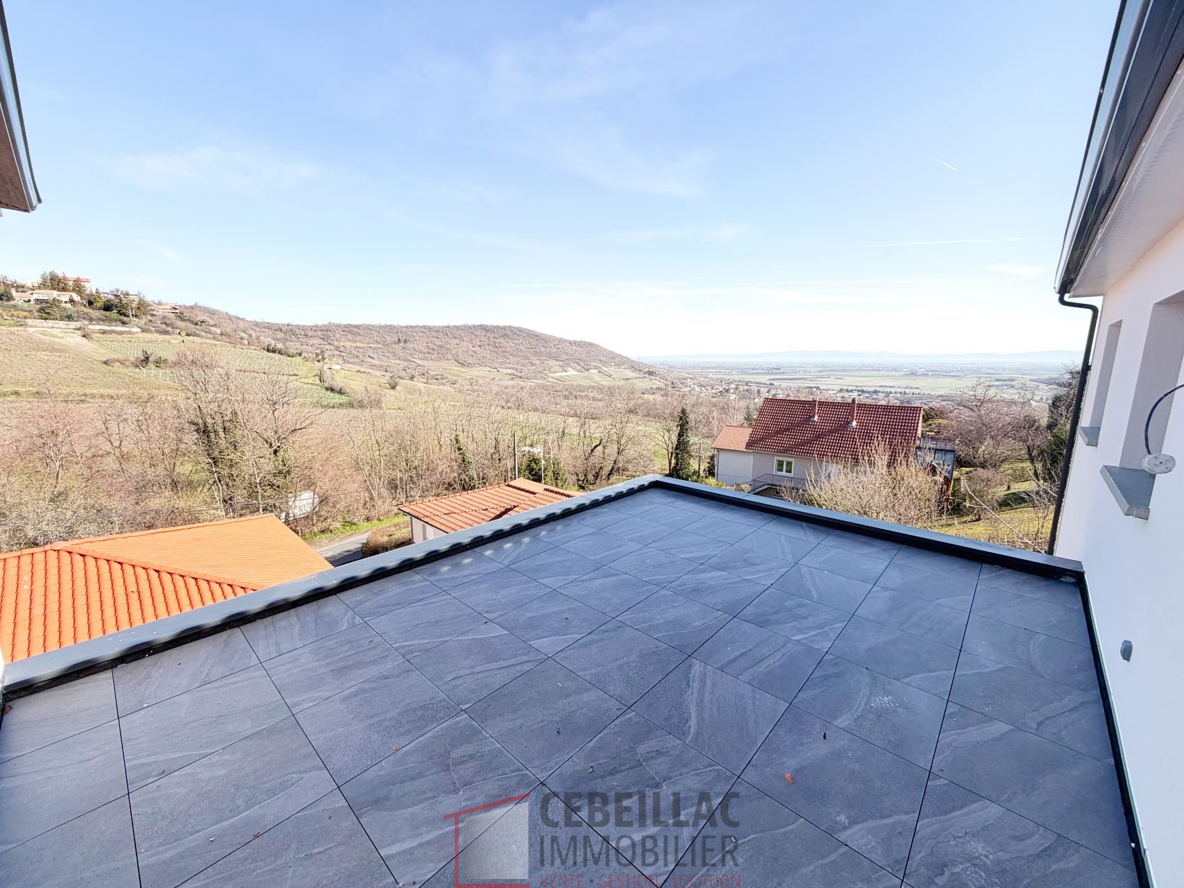 Très grande terrasse panoramique avec piscine extérieure intégrée Terrain engazonné et arboré Terrain de pétanque