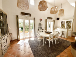 Dans une impasse, sur la charmante commune de Vidauban et sur plus de 1000 m2 de terrain plat et clos, magnifique villa de construction traditionnelle de 146 m2. La maison comprend un lumineux séjour climatisé avec cheminée insert et accès terrasse couverte, une grande cuisine aménagée et équipée donnant accès à un large cellier et un garage double. Trois belles chambres avec placard, dont une suite parentale avec douche, baignoire et toillettes. Une salle d'eau avec WC et un WC séparé. Le plus: une belle mezzanine de 27 m2 pouvant accueilir un bureau ou des couchages supplémentaires. Côté jardin une belle piscine 10X4, une cuisine d'été, un terrain de pétanque et une très grande terrasse. Honoraires d'agence charge vendeur Les informations sur les risques auxquels ce bien est exposé sont disponibles sur le site Géorisques : www.georisques.gouv.fr.