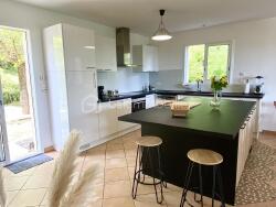 L'entrée possède un placard de rangement. Devant vous se dessine une pièce de vie de plus de 65 m², composée d'un espace salon avec meuble encastré, une salle à manger et une cuisine ouverte avec un îlot central qui invite à passer de bons moments conviviaux.