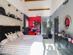 Entièrement climatisée, édifiée sur un terrain de 2 375 m², elle offre : Une pièce de vie lumineuse d'environ 60 m² avec cuisine entièrement équipée et baies vitrées ouvertes sur une grande terrasse en travertin, avec vue dégagée sur la campagne. Une salle à manger de 23 m².- 4 belles chambres avec accès direct à la piscine, dont une suite parentale de 18 m2 et un dressing de 14 m2. Une salle de bain avec baignoire et douche à l'italienne.