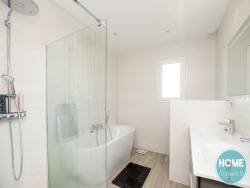 Prestations : Grand garage double avec portes automatiques, toutes les ouvertures sont en double vitrage et volets roulants.