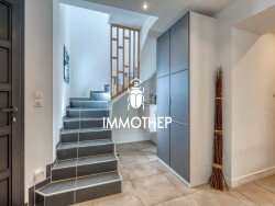 Prestations haut de gamme : charpente traditionnelle, menuiseries aluminium, domotique, chauffage au sol sur 2 niveaux, PAC air/eau, VMC double flux, finitions soignées qui témoignent d'une construction de qualité et hautes performances energétiques.