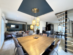 Sur la charmante commune du Cannet-des-Maures, dans un quartier parfaitement calme et arboré, sur 2576 m2 de terrain plat, clos et fermé par portail automatique, magnifique construction des années 70 entièrement rénovée. La villa comprend au RDC un immense séjour avec cuisine ouverte de plus de 60 m2 climatisé avec cheminée. 2 belles chambres avec placard, une salle de bain avec wc douche et baignoire balnéo, une buanderie et un toilette séparé. A l'étage une mezzanine pouvant accueillir un bureau, une chambre d'amis avec dressing ainsi qu'une large suite parentale de plus de 50 m2 comprenant dressing et salle de bain avec double vasque, douche, baignoire et WC. Côté jardin vous serez charmé par un environnement verdoyant, une piscine forme libre 10X5, une dépendance: studio avec climatisation et salle d'eau ainsi qu'une terrasse d'environ 370 m2. Le terrain possède également un garage en bois sur dalle béton d'environ 18 m2. Honoraires d'agence charge vendeur. Les informations sur les risques auxquels ce bien est exposé sont disponibles sur le site Géorisques : www.georisques.gouv.fr.