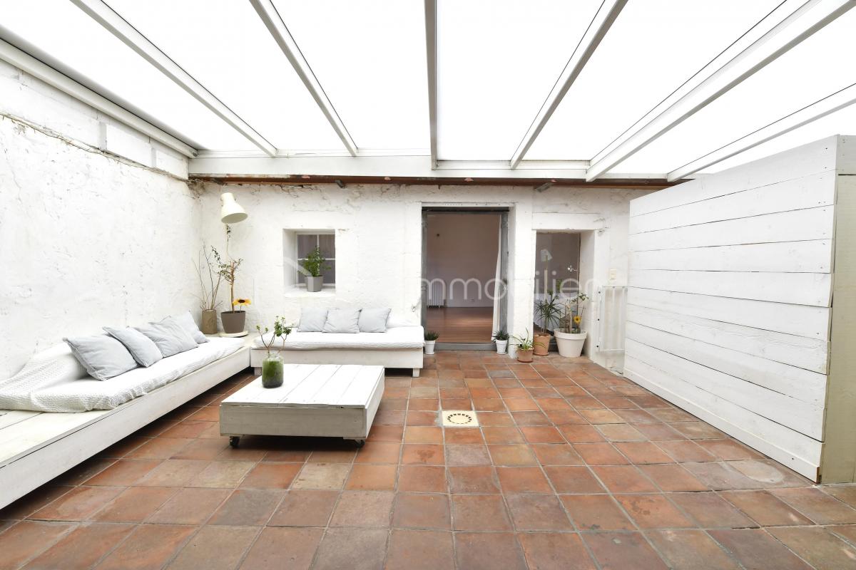 Au rez-de-chaussée vous disposerez d'un appartement T2 de 35m² avec un séjour-cuisine, une chambre, une salle d'eau avec wc. De l'autre côté se trouve l'entrée de l'habitation principale, un bureau, une chambre.