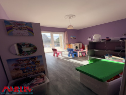 Villa à CLOYES, confortable et idéale pour famille avec 5 chambres Dans le centre de CLOYES, profitez de cette villa avec entrée desservant un salon séjour lumineux avec cuisine aménagée de 50m2 environ ouvrant sur la terrasse, buanderie attenante, 2 chambres, salle de bains (avec baignoire et douche), wc . A l'étage: couloir desservant une première grande chambre de 30m2 environ, dressing, 2 autres chambres (13m2 et 16m2 environ avec placard), salle d'eau wc. Belle terrasse en travertin Sous sol total à usage de garage, cave et débarras L'ensemble sur un terrain très agréable de 1080m2 avec petit cours d'eau sur le terrain. Idéal pour que la famille profite à pied des écoles et des commerces en toute facilité
