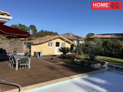 L'agence Home40 vous présente cette maison de 120 m2, idéalement située entre le centre ville et le lac dans un quartier calme et sans vis-à-vis, avec une studio indépendant et grand garage, sur un terrain de 829m2. Piscine au sel et jaccuzi intégré à la plage. Elle comprend une entrée avec placards, une pièce de vie avec cuisine aménagée et équipée, trois suites parentales. 3 WC. Une buanderie avec lave linge et sèche linge. Studio indépendant de 14m2 permettant de recevoir des amis en toute tranquillité. Jardin paysagé, vaste terrasse. Garage de 32m2. Le confort est assuré par une climatisation réversible gainable. À quelques minutes en vélo de l'école du Pin Vert, à 10km du collège Nelson Mandela de Biscarrosse, à 16km du centre hospitalier Pole Santé de La Teste de Buch, à 20min du Bassin d'Arcachon. Les informations sur les risques auxquels ce bien est exposé sont disponibles sur le site Géorisques
