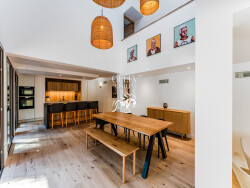 Cette villa entièrement réhabilitée en 2025 offre 190 m² sur un terrain de plus de 900 m², dans un environnement calme et exposé plein sud. Elle est composée d'un vaste séjour lumineux avec cuisine moderne ouverte et cellier, une suite parentale au rez-de-chaussée, ainsi que trois suites supplémentaires à l'étage, toutes équipées de leur propre salle d'eau et WC.Un garage de 40 m², une cave, une terrasse en bois couverte, une piscine automatisée et un jardin paysager complètent ce bien.