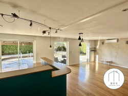 Votre agence BOS Immobilier vous propose à Lamanon, secteur résidentiel, proche du village, dans lotissement calme et en impasse. Maison rénovée de 144 m2, en majorité de plain pied, qui propose de confortables volumes tel qu'un spacieux séjour d'environ 50 m2 m² avec cuisine ouverte. 3 chambres en rdc, bureau, salle de bains et salle d'eau. 2 wc. Salle de jeux en étage de 15 m2 avec vélux Garage et abris de jardin