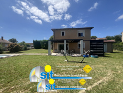 AM2751 - 15 min au sud de VIENNE (38200) / Sur la commune de CHONAS L'AMBALLAN L'agence SIT IMMOBILIER vous propose à la VENTE et en EXCLUSIVITÉ cette VILLA édifiée en 2006, offrant une jolie vue sur la campagne, d'environ 120 m2 habitables avec 4 CHAMBRES, sur un terrain de 1 300 m2 avec PISCINE. La villa vous offre un grand hall d'entrée, une vaste pièce à vivre de 46 m2, baignée de lumière, avec une cuisine équipée ouverte sur la salle de séjour donnant sur la terrasse. Elle comprend également 4 CHAMBRES, dont une au rez-de-chaussée, une salle de bains, une salle d'eau et 2 WC. Garage attenant et communiquant. Chauffage par poêle à granulés. Terrain clos et arboré, avec piscine 8x4 sécurisée disposant d'une grande plage. Terrasse carrelée avec pergola. Vous serez séduit par sa situation, à quelques minutes à pied du centre village avec son école et ses commerces. Située dans un lotissement, au calme. Rafraîchissement à prévoir. À 5 min du futur échangeur VIENNE/REVENTIN-VAUGRIS. DPE : D PRIX AFFICHE HONORAIRES AGENCE INCLUS A CHARGE VENDEUR Les informations sur les risques auxquels ce bien est exposé sont disponibles sur le site Géorisques : www.georisques.gouv.fr Retrouvez nos annonces sur : www.sit-immobilier.com