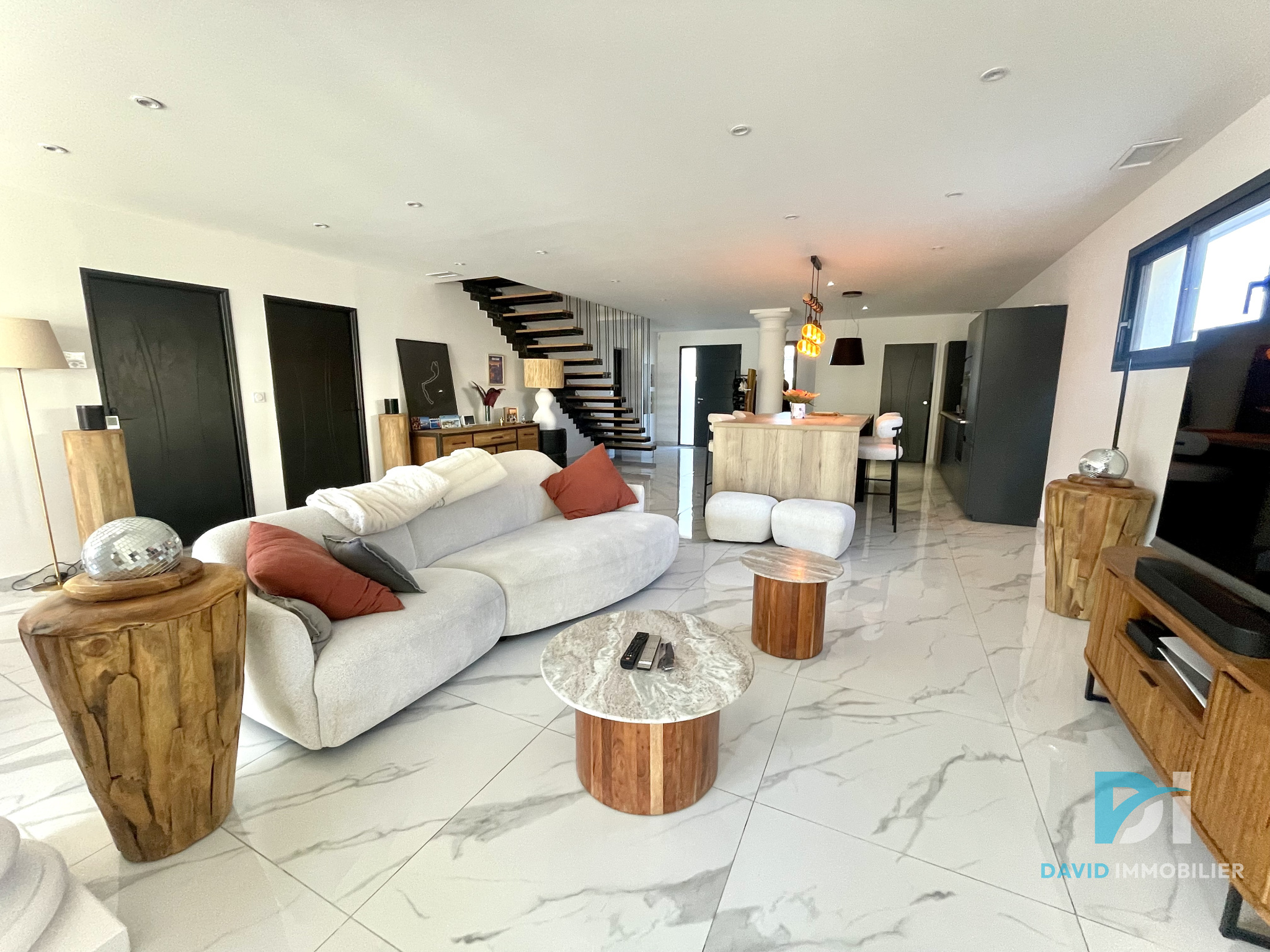 Villa avec piscine chauffée, parc et vues. Sur les hauteurs d'Olargues, classé parmi les plus beaux villages de France, au pied des Gorges d'Héric et du massif du Caroux, à seulement 20 minutes de Lamalou-les-Bains et 45 minutes de Béziers, cette propriété d'exception saura séduire les amoureux d'espace, de confort et de nature. Construite en 2003, cette villa d'architecte en R+1 développe une surface habitable de 214,8 m², agencée avec une attention particulière portée à la lumière, aux volumes et à la fonctionnalité. L'entrée dessert un vaste séjour-salle à manger de 55 m², baigné de lumière grâce à ses nombreuses ouvertures, et donnant accès à plusieurs terrasses extérieures réparties sur trois faces de la maison. La cuisine séparée de 20 m², entièrement aménagée et équipée, ravira les amateurs de gastronomie, avec son accès direct vers l'extérieur. Côté nuit, vous découvrirez quatre spacieuses chambres, dont une magnifique suite parentale de 30 m² avec dressing et salle de bain privative. Un bureau, idéal pour le télétravail ou les professions libérales, complète cet espace. Une salle d'eau, une buanderie et un cellier viennent renforcer le confort de vie au quotidien. L'ensemble est prolongé par un garage de 55 m², une chaufferie indépendante, et de nombreux rangements. Le tout a été pensé dans les moindres détails avec des matériaux de qualité et des finitions soignées. À l'extérieur, la villa est implantée sur une magnifique parcelle arborée de 3570 m², véritable écrin de verdure, soigneusement paysagé et entretenu. Vous y trouverez un puits, des espaces de détente à l'ombre des arbres, un terrain de jeux naturel pour petits et grands, et surtout une piscine au sel de 8x4 mètres, chauffée, parfaitement intégrée dans l'environnement, avec sa terrasse ensoleillée. Ce bien rare combine confort moderne, cadre de vie paisible, proximité avec des sites naturels exceptionnels et volumes généreux, que ce soit pour une résidence principale, secondaire ou un projet d'accueil touristique (gîte, maison d'hôtes...). Un bien unique à découvrir sans tarder. Pour plus d'informations ou l'organisation d' une visite, n'hésitez pas à nous contacter. Un véritable havre de paix vous attend, entre montagne, rivière et lumière du Sud. Offre exceptionnelle. Visites sur rendez-vous