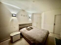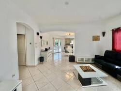 La villa comprend deux parties avec deux entrées indépendantes séparées mais communicantes par un grand garage traversant avec mezzanine transformable en pièce supplémentaire tout en conservant ce même garage avec portail automatique. ( possibilité de créer ainsi un F3 )