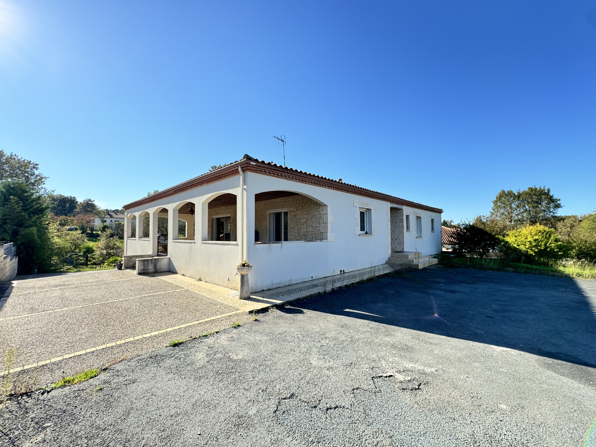 Un extérieur pensé pour profiter pleinement Implantée sur un magnifique parc clos et arboré de 2 000 m2, accessible par deux portails, la propriété propose plusieurs espaces dédiés au confort et aux moments de convivialité :