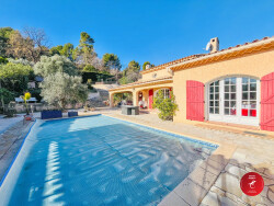 Gecko Agency vous propose sur les hauteurs de Draguignan, cette charmante villa provençale bénéficiant d'une vue dégagée et d'un environnement sans vis à vis ainsi qu'une excellente performance énergétique (classe B), gage de confort et de faibles consommations. Implantée sur un terrain clos et arboré de plus de 1500m², la villa d'une superficie totale de 144m² offre des volumes généreux et une belle luminosité. Elle se compose d'un hall d'entrée, d'une pièce de vie spacieuse équipée d'un poêle à granulés ainsi qu'une cheminée à bois dans la salle à manger pour les soirées conviviales. La cuisine indépendante, récemment rénovée, allie fonctionnalité et modernité. Ce niveau comprend également 2 grandes chambres dont une suite parentale avec sa salle d'eau, une salle de bains avec WC, et un autre WC indépendant. A l'étage, une vaste mezzanine aménagée en chambre avec grand dressing offre de multiples possibilités et ce dernier peut facilement être transformée en une 4eme chambre. Le double garage permet de garer les voitures et le sous-sol de 130m² offre de nombreux usages: espace de stockage, atelier, salle de loisirs, ou encore chambre/studio indépendant pour accueillir la famille, les amis. Une propriété idéale pour les amoureux de calme, espace et nature tout en restant à proximité des commodités. Pour vendre ou acheter nous sommes là pour vous accompagner dans les meilleurs conditions.