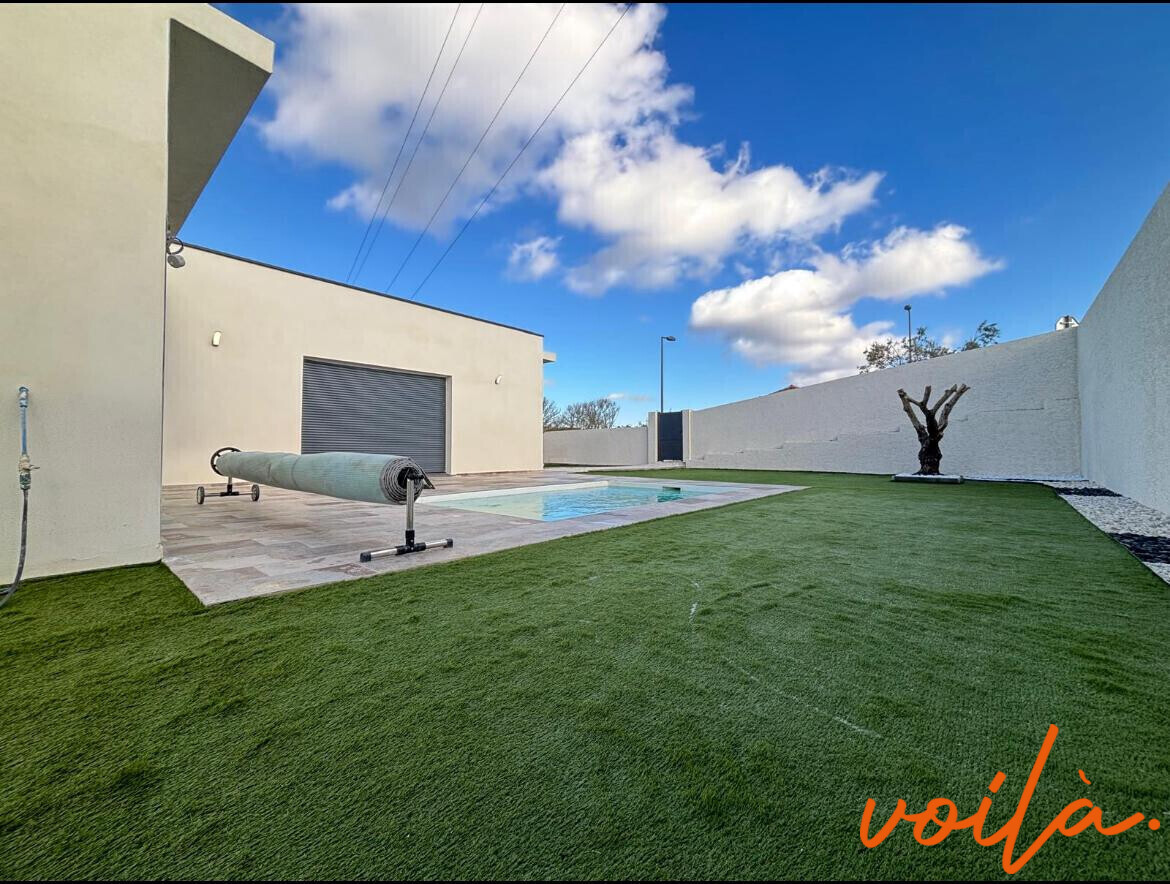 REF : SABLE - 15min CARCASSONNE - Votre Agence Voilà Immobilier vous présente à la vente une charmante maison neuve de plain-pied d'une surface de 112 m² hab. offrant de beaux volumes et une belle luminosité. Elle se compose d'un vaste séjour de 55 m², lumineux, ouvrant directement sur l'extérieur ,la maison dispose de 3 chambres, dont une suite parentale, ainsi que d'une salle de bains et de toilettes indépendants. A l'extérieur, vous profiterez d'un espace agréable avec terrasse, piscine et jardin. Le bien comprend également un garage, ainsi qu'un sous-sol de 110 m², offrant un grand espace de stockage, un atelier ou de multiples possibilités d'aménagement en chambre supplémentaire, idéale pour un projet évolutif ou un espace indépendant. Les ++ : Prestations modernes, double vitrage, volets roulants électriques, gainable dans toutes les pièces, garantie décennale. Les informations sur les risques auxquels ce bien est exposé sont disponibles sur le site Géorisques : www.georisques.gouv.fr Le prix indiqué comprend les honoraires de négociation, ces honoraires sont à la charge exclusive du vendeur. Camille Maurette, Directrice, immatriculé au RSAC de Carcassonne sous le numéro 90464305300021- carte professionnelle n° CPI11012021000000008