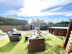A proximité de la plage et de tous commerces, belle villa de 5 pieces en 3 faces. Vaste salon-séjour avec cuisine équipée, 4 chambres dont 1 en rdc. 1 salle de bain et 1 salle d'eau, 2 wc. Garage. piscine hors sol..