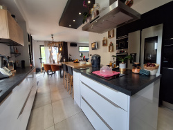En exclusivité, belle villa moderne de 2021 rt 2012, d'environ 162m2 habitables sur parcelle close de plus de 640 m2, à 15mn de Clermont Ferrand, secteur Sud Ouest, à L'Etang entre Nohanent et Chanat La Mouteyre, dans le parc des volcans d'Auvergne, à de la Chaine des Puys Le bien est composé en rez de chaussée : entrée, salon séjour sur cuisine ouverte (électroménagers dernière génération système domotique) de 61m2, accés direct sur terrasse coté sud, wc, cellier. Au 1er étage : open space/bureau d'environ 20m2, 4 chambres dont une suite parentale (salle d'eau et dressing) avec balcon terrasse, wc, salle de bain. Garage 28m2, abri de jardin, piscine hors sol, pergola, terrasse. Pompe à chaleur air/air, poêle à bois, climatisation gainable dans toute la maison. Stationnements intérieurs, domotique, alarme, volets roulants, cuisine high tech, ballon thermodynamique. Matériaux de qualité Maison fonctionnelle, spacieuse, environnement calme, école à proximité DPE : B Taxe foncière : 1180EUR Prix : 419 900EUR honoraires d'agence inclus Contactez Frédérique Barneaud Agence 1465 Immo au 06 62 50 35 22 frederique@1465immo.fr