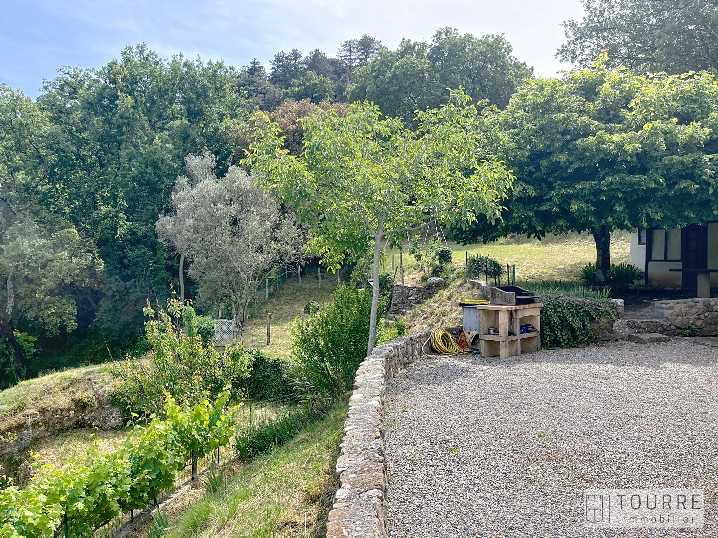 Jardin entièrement clôturé avec portail coulissant. Peu d'entretien extérieur à prévoir.