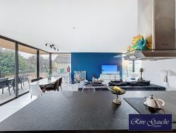 L'Agence Rive Gauche vous propose au fond d'une impasse à Ville-la-Grand, en proximité direct avec la Suisse et les commodités environnantes, cette maison d'habitation individuelle édifiée sur un terrain de 738m2 clos. Cette construction en toit plat surélevée offre un espace d'habitation de plain pied de 119m2 composé d'un hall d'entrée donnant sur une pièce de vie de 50m2 avec cuisine entièrement équipée avec ilot central ouverte sur le séjour, 2 chambres avec rangements intégrés, un espace parentale avec chambre et salle de bain, une salle d'eau et un wc indépendant. Au sous-sol en partie décaissé, la maison dispose d'une chambre supplémentaire avec salle d'eau et wc, un bureau pouvant être utilisée comme chambre d'appoint, 2 pièces clauses de rangements/ débarras, un garage de 30m2 avec porte sectionnelle motorisée et un espace chaufferie buanderie avec point d'eau. A l'extérieur une terrasse d'environ 70m2 avec un accès depuis chacune des pièces. Le terrain peut accueillir une piscine, dispose de 3 places de parking et est clos par un portail.