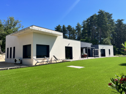 G?raldine VIEN PARGUEL (06 22 90 57 55) R?seau Expertimo vous propose en Exclusivit?, Rare ? la vente, sur la commune de Saint Etienne de Fontbellon en limite d'Aubenas, dans un quartier pris?,?cette magnifique?Villa Contemporaine,?expos?e plein sud, d'une surface habitable de 185?m2 env. dont 138 m2 env. en plain-pied,?sur presque 2 000 m2 de Terrain Paysag?, clos, enti?rement Plat et ... sa superbe Piscine?? ? La maison est compos?e d'un Hall d'entr?e avec Placard et WC donnant sur une Splendide Pi?ce de Vie (60 m2?env.) compos?e d'un coin Salon Cosy et Chaleureux, d'une Magnifique Cuisine moderne enti?rement ?quip?e surplombant l'espace Salle ? Manger baign? de lumi?re avec sa grande Baie vitr?e?? galandage donnant sur la Terrasse et le Jardin. ? Sur ce m?me niveau on trouve une Magnifique Chambre Parentale avec sa Terrasse Priv?e, sa SDE avec un 2?me?WC privatif, et son immense Dressing.? ? L'?tage est ici consacr? aux enfants, il est compos? d'une 2?me, 3?me?et 4?me?Chambre, d'une 2?me?SDE, d'un 3?me?WC ind?pendant et belle surprise, d'un Espace Original ??d?tente?? suspendu dans les Airs... ? On trouve ?galement un Espace ind?pendant compos? de 2 pi?ces Annexes avec WC et Terrasse Privative, actuellement am?nag? en Bureau et Atelier. Pourrait facilement ?tre transform? en D?pendance pour recevoir confortablement Amis et Famille ou en Local pour Professions Lib?rales ou Artisanales... ou en Salle de Sport... ou pourquoi pas, en Salle Cin?ma... ? Enfin, on trouve ?galement, un Garage, un grand Abri voiture,?un Cellier / Buanderie et?de nombreux Stationnements... tout y est ne reste qu'? poser vos valises... ? Construction Contemporaine de fin 2016,?RT 2012, pr?sentant des prestations ??haut de gamme?? telles que, pour l'Int?rieur?: Chauffage au Sol A?rotherme Rafraichissant Daikin, Cuisine Schmidt, ?lectrom?nager de marque, Menuiseries Alu Noires, Commande volets centralis?e, Adoucisseur d'eau, Alarme, et pour l'Ext?rieur?: un Jardin enti?rement Paysag? proposant Arrosage Automatique sur l'ensemble du Jardin, une immense Piscine traditionnelle 15 x 6 au Sel avec Volet Roulant... Portail ?lectrique avec Visio... ? ??Une signature contemporaine qui comporte tous les atouts d'une villa familiale??. ? Se distingue par son Originalit?, ses Prestations, ses Espaces de vie conviviaux, sa Luminosit?, son magnifique Jardin. ? Id?alement plac? par son cot? Urbain proche du Centre-ville, et n?anmoins au Calme de la Campagne un v?ritable coup de coeur pour les amoureux des belles choses en r?sidence principale ou secondaire... ? ? DAVANTAGE D'INFORMATIONS ET DE PHOTOS SUR MON SITE INTERNET RESEAU EXPERTIMO, onglet ??TROUVER UN AGENT??? ? Le prix de vente est exprim? Honoraires Inclus ? la charge du vendeur. ? ? ? ? Cette annonce vous est propos?e par G?raldine VIEN PARGUEL - EI - NoRSAC: 828757948, Enregistr? ? Greffe du tribunal de commerce de AUBENAS - Annonce r?dig?e et publi?e par un Agent Mandataire -