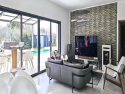 L'agence immobilière L'Atelier de l'Immo a le plaisir de vous proposer à la ventecette superbe villa contemporaine de plain-pied, construite en 2021, située à seulement 10 minutes de Sommières, dans un environnement paisible au fond d'une impasse. Développant environ 180 m2 habitables, la maison séduit par ses volumes généreux et sa luminosité. Elle s'organise autour d'un vaste salon-séjour de plus de 80 m2, baigné de lumière grâce à de larges baies vitrées à galandage, avec cuisine américaine entièrement équipée. Cet espace de vie chaleureux est également agrémenté d'un poêle à pellets, apportant confort et convivialité, et s'ouvre sur une belle vue dégagée ainsi qu'un jardin sans vis-à-vis. L'espace nuit comprend trois chambres confortables et une salle de bains indépendante, dont une suite parentale avec salle d'eau privative. Une seconde suite avec salle d'eau, pouvant être totalement indépendante, offre un espace idéal pour recevoir, aménager un bureau ou créer un espace dédié au télétravail. La villa bénéficie de prestations haut de gamme : domotique intégrale, climatisation gainable, grandes baies vitrées à galandage et système d'alarme, garantissant confort et sécurité au quotidien. À l'extérieur, le terrain arboré d'environ 1 100 m2accueille une grande terrasse en béton lissé, un espace barbecueconvivial et une magnifique piscine à débordement, parfaitement intégrée dans un cadre intime, à l'abri des regards. Un garage de 23 m2 avec mezzaninecomplète l'ensemble, ainsi qu'une allée permettant de stationner plusieurs véhicules. Parfaitement adaptée à une vie de famille, cette villa moderne offre également un cadre idéal pour ceux qui souhaitent travailler depuis chez eux, dans un environnement calme et privilégié. Une propriété récente, élégante et facile à vivre, à découvrir sans tarder. Pour plus d'informations, organiser une visite, ou visiter à distance grâce à la visite virtuelle, contactez :L'Agence L'Atelier de l'Immo Lionel 06 87 61 43 08 ou Stéphanie 06 14 78 11 91