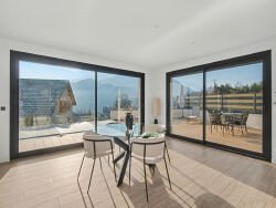 EN EXCLUSIVITÉ CHEZ CORNER IMMO : Lignes contemporaines, volumes généreux et vue dégagée : une maison récente où tout a été pensé pour le confort et l'élégance. Nous vous proposons une maison achevée en 2024 sur la commune de Vimines, adoptant un style contemporain épuré, aux lignes architecturales affirmées et à l'esthétique résolument actuelle, inspirée des codes minimalistes modernes. L'ensemble s'inscrit dans une approche cohérente et intemporelle, alliant design, fonctionnalité et qualité de conception, idéale pour une clientèle en recherche d'un habitat moderne, élégant et durable. Développant environ 180 m² habitables, la maison s'implante sur une parcelle de 598 m², offrant un cadre agréable et dégagé, laissant la possibilité aux futurs propriétaires de personnaliser les aménagements extérieurs selon leurs envies. Le coeur de la maison se compose d'un vaste espace de vie d'environ 60 m², réunissant salon, salle à manger et cuisine ouverte dans une circulation fluide et fonctionnelle. Les larges ouvertures vitrées prolongent naturellement l'intérieur vers l'extérieur et offrent une belle continuité avec une vaste terrasse d'environ 100 m², accueillant une piscine enterrée et chauffée de 7 x 3 m, idéale pour profiter des beaux jours en toute intimité. Ce niveau se complète de trois chambres de 11,25 à 12,21 m², d'une grande buanderie, d'une salle de bain contemporaine et d'un WC indépendant. A l'étage, une première chambre de 11,10 m² ainsi qu'une vaste suite parentale d'environ 48 m², comprenant une salle d'eau privative et un dressing sur mesure. Cet espace nuit dessert une terrasse de 58 m² offrant un panorama remarquable sur les massifs environnants : Chartreuse, Bauges et Chaîne de l'Épine. Au sous-sol, de multiples possibilités s'offrent aux futurs propriétaires. Entièrement aménagé, cet espace accueille actuellement une salle de cinéma, une salle de sport ainsi qu'un espace de stationnement. A seulement quelques minutes de Chambéry, tout en restant à l'écart de l'agitation, cette maison séduira les acquéreurs en quête d'un lieu de vie confortable, contemporain et durable. Corner Immo vous propose ici une opportunité rare à Vimines, à découvrir sans tarder! Wilfried EXERTIER (EI) Agent Commercial - Numéro RSAC : 792381824 - CHAMBÉRY.