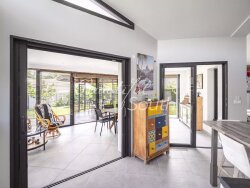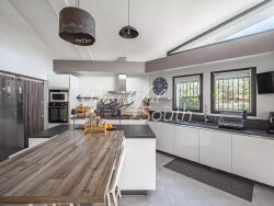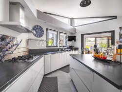 Située en lisière d?un petit lotissement calme à Palau-del-Vidre, cette superbe villa de qualité, au design contemporain, offre un cadre de vie paisible et élégant à seulement quelques minutes des commodités et des plages. Édifiée sur un terrain joliment arboré de 1001m², la maison se compose de deux niveaux. Dès l?entrée, on est séduit par la luminosité et les volumes de l?espace de vie, véritable coeur de la maison. Le rez-de-chaussée propose une pièce à vivre spacieuse avec cuisine ouverte, donnant sur une terrasse couverte et le jardin. Ce niveau comprend également une suite parentale avec dressing et salle de bains, un espace bureau, un WC indépendant, ainsi qu?un accès direct au garage et à la buanderie. À l?étage, deux belles chambres, chacune avec terrasse privative, deux salles d?eau, ainsi qu?un second espace bureau (ou 4e chambre possible) complètent l?ensemble. À l?extérieur, les jardins, parfaitement entretenus, offrent un véritable havre de paix : de nombreux arbres fruitiers, un potager, une piscine à la forme originale, ainsi qu?un magnifique kiosque de jardin pour profiter des belles journées ensoleillées. Prestations de qualité : forage, climatisation gainable réversible, chauffe-eau thermodynamique, panneaux photovoltaïques, possibilité d?installation d?un poêle ou insert dans le salon... Une maison coup de coeur, alliant confort moderne, performance énergétique et charme méditerranéen, dans un environnement privilégié. À découvrir sans tarder !